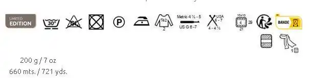 - Muestra de tensión de 10 x 10 cm = 21 puntos y 29 vueltas.
