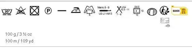 - Se recomienda trabajar con agujas de punto de 7 a 8 mm o ganchillo de 8 a 9 mm.